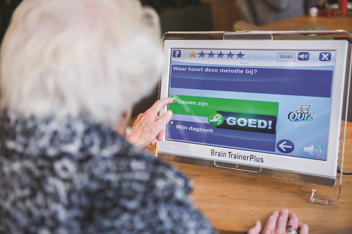 Ontdek hoe de BrainTrainerPlus™ de dagelijkse zorg op uw afdeling lichter, vrolijker en effectiever maakt. Dit innovatieve zorginstrument is speciaal ontwikkeld om ouderen met dementie, NAH of andere cognitieve beperkingen op hun eigen niveau uit te dagen. Omdat de software van de BrainTrainerPlus™ zich automatisch aanpast aan het niveau van de gebruiker, ervaren bewoners direct succes en plezier, wat onrust vermindert en de sfeer op de groep merkbaar verbetert.